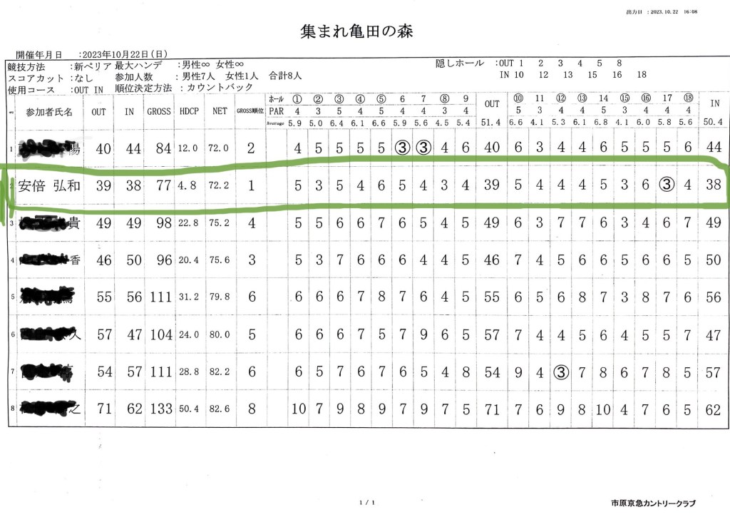 スコア39+38=77でおそらく15年ぶりの78からの更新です。