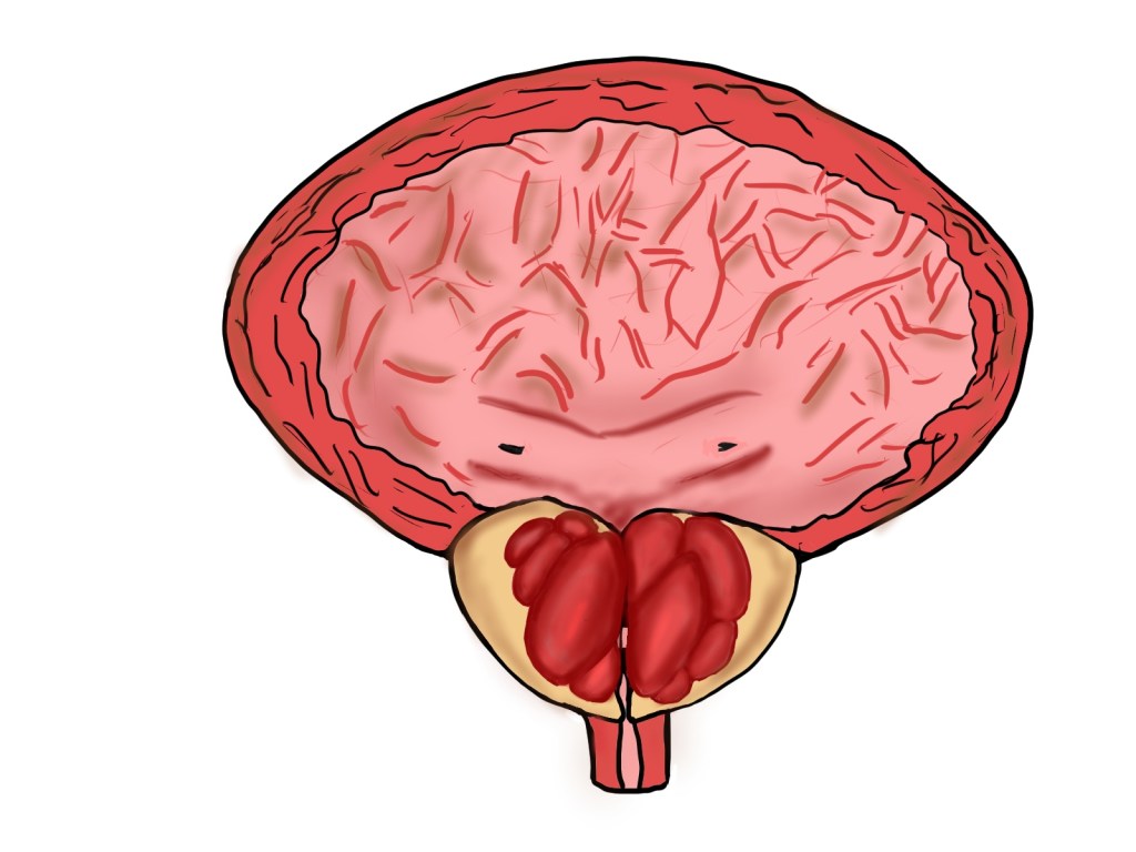 腺腫が腫大し、尿道を圧迫 → 膀胱の筋肉が発達